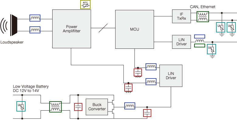 Here are the optimal products for AVAS for xEV, selected from the TDK Group's product lines, including capacitors inductors, EMC Components and sensors.