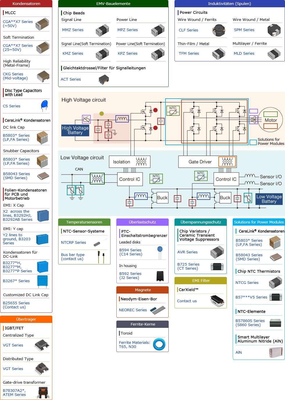 xEV/AutomobilindustrieInverter von Elektromotoren PDF Gibt einen Überblick über Produkte der TDK-Gruppe für Inverter von Elektromotoren in xEV.