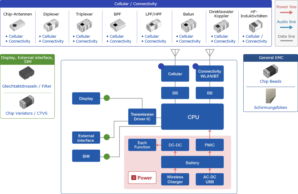 TDK bietet eine Vielzahl von RF- und Magnetbauteilen für Mobile Router Anwendungen. Zum Beispiel HF-Filter, Chip-Antennen, Entstörfilter, Chip-Varistoren, Daten- und Signalleitungsdrosseln / Gleichtaktfilter sowie Leistungs- und Hochfrequenzinduktivitäten.