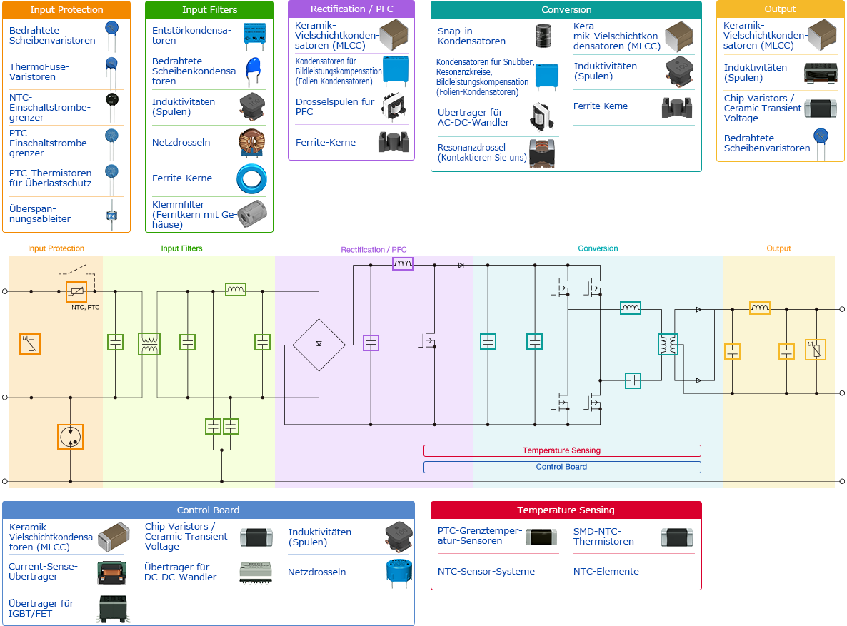 TGibt einen Überblick über Produkte für Schaltnetzteil-Anwendungen aus dem reichhaltigen Portfolio der TDK-Gruppe.