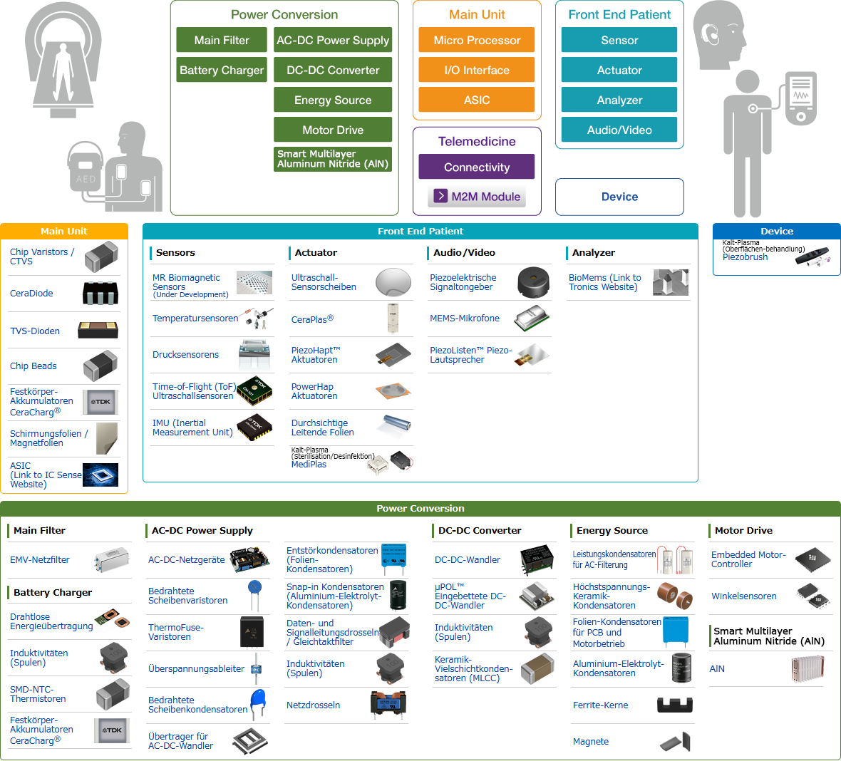 Mit einer Vielzahl von TDK-Technologien bieten wir Lösungen mit elektronischen Komponenten und Geräten für Medical & Healthcare.