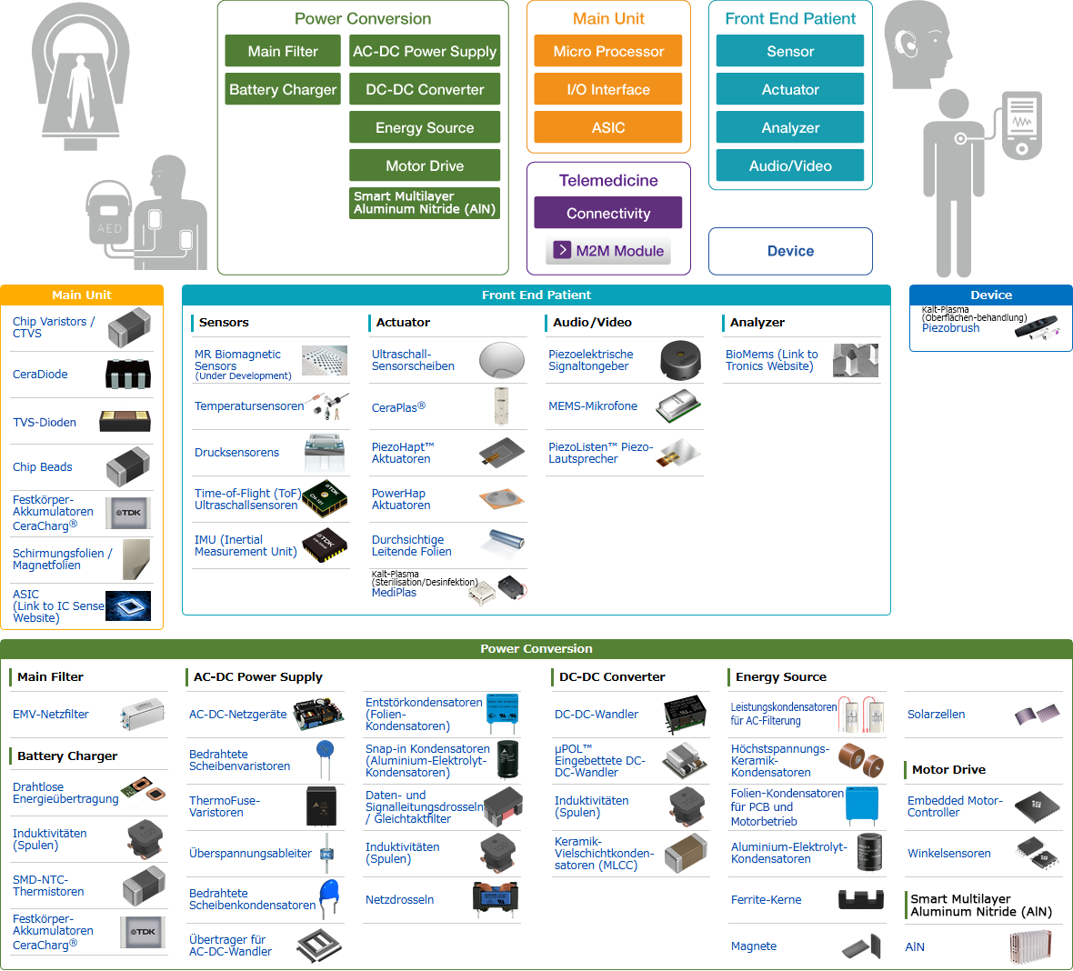 Mit einer Vielzahl von TDK-Technologien bieten wir Lösungen mit elektronischen Komponenten und Geräten für Medical & Healthcare.