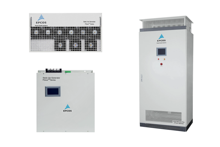 PQvar™ist ein modularer Static-Var-Generator zur stufenlosen Blindleistungskompensation und Lastsymmetrierung in Industrienetzen und großen Gebäudekomplexen. Die Ansprechzeit von < 15 ms und eine dynamischen Reaktionszeit von < 50 μs erlaubt eine deutlich schnellere Kompensation als konventionelle Anlagen; es kann ein cos phi von 0,99 erzielt werden. Geeignet zur stufenlosen Kompensation induktiver wie kapazitiver Lasten. Auf der Niederspannungsebene ist PQvar für 400 V- und 690 V-Netze ausgelegt. PQvar ist als Einzelmodul mit Kompensationsleistungen von 30 bis 200 kvar und als System bis zu 800 kvar pro Kompensationsschrank verfügbar.