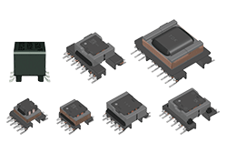 Isolationstransformatoren mit hohen Spannungsfestigkeiten werden in den IGBT-Gate-Drive-Stromversorgungen von Motorwechselrichtern für xEVs benötigt. Die Produkte dieser Serie kombinieren erfolgreich eine Verschiebung zu hoher Kopplung (geringe Leckage) mit einer Verschiebung zur vollautomatischen Wicklung durch Verwendung einer neuen Struktur, die somit automatisches Wickeln ermöglicht. In der Folge können die Isolationstransformatoren einen stabilen Output gewährleisten. Die Trennung der Verbindungsdrahtanschlüsse für die Wicklungen von den Leiterplattenverbindungsanschlüssen verbessert die Vibrationsbeständigkeit und ermöglicht eine hochpräzise Anschlussflachheit. Da die Produktpalette nun Produkte mit einem Ausgang bis hin zu Produkten mit 4 Ausgängen für Anwendungen im Fahrzeugbereich umfasst, sind sie mit einer Vielzahl von Layouts für Wechselrichterplatinen kompatibel.