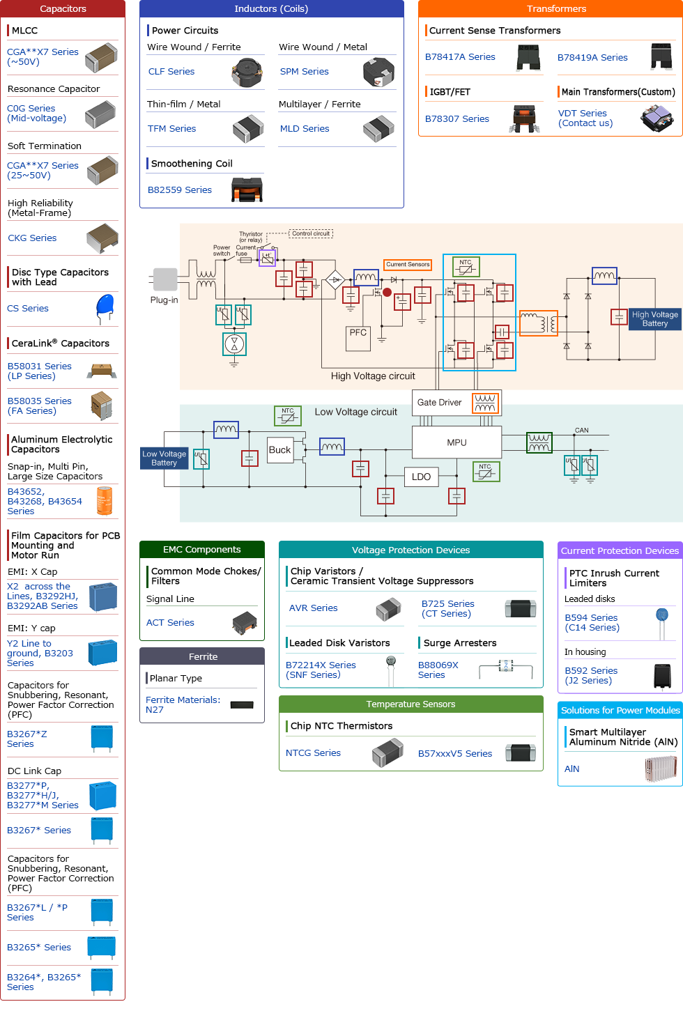 Automotive/xEVOnboard Charger PDF This is an introduction of the most suitable products related to "Onboard Charger" for xEV from the TDK Group's product lines.