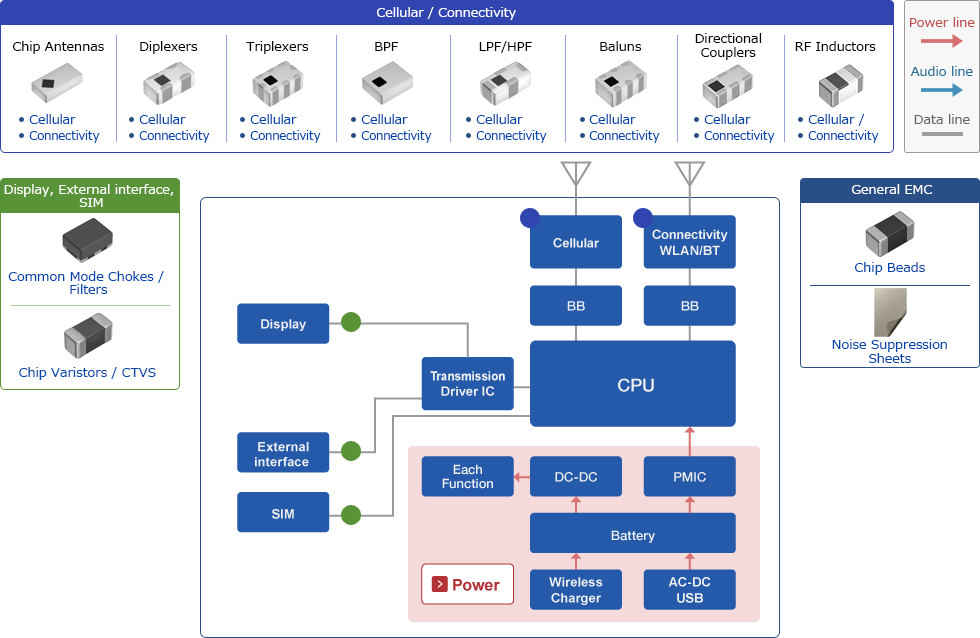 TDK offers you a wide variety of RF and Magnetics building blocks for Mobile Routers applications. For example RF Filters, Chip Antennas, Noise Suppression Filters, Chip Varistors, Common Mode Filters and Chokes, and Power and RF Inductors.