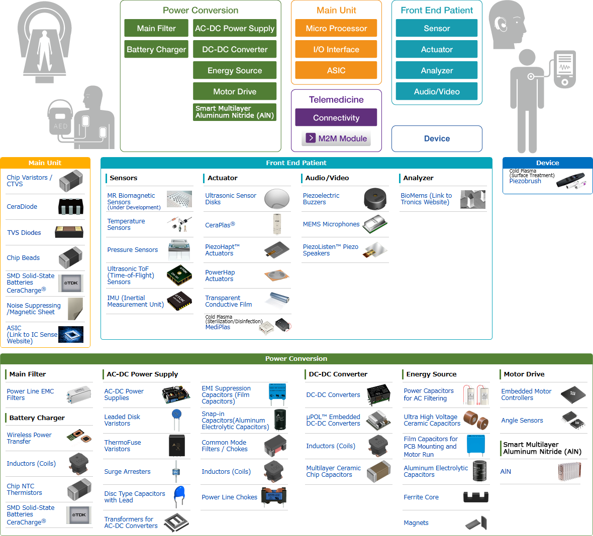 With a wide variety of TDK technologies, we offer solutions with electronics components and devices for Medical & Healthcare.