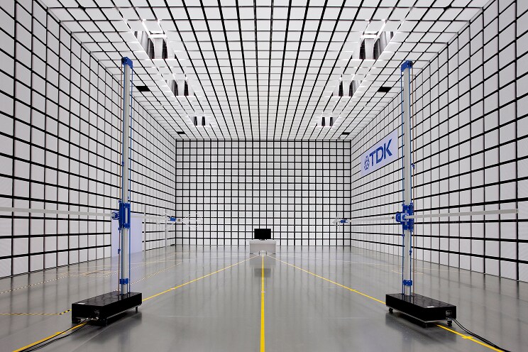 We create anechoic chambers to meet your requirements, designing for the desired functions and performance, and ensuring compliance with specific standards. We welcome your inquiries concerning repairs or maintaining your existing anechoic chambers. In addition, we also manufacture and sell an assortment of radio wave absorbers for creating a comfortable electromagnetic environment where high-frequency electromagnetic waves are used such as wireless LAN and ITS. TDK's radio wave absorption material is effective in improving all types of electromagnetic environments and in protecting human bodies from electromagnetic waves.
