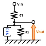 - General circuit. By dividing the voltage into a thermistor and fixed resistor, it prevents thermal runaway due to self-heating of the thermistor.