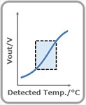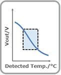 - You can adjust Vout by adjusting R1 & R2. (R2:Low temp. side) Vout increases with temperature rise. Also, self-heating of the thermistor can be reduced.
