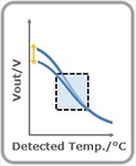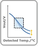 - You can adjust Vout by adjusting R1, R2 & R3. (R2:High temp. side, R3:Low temp. side) Vout increases with temperature rise. Also, self-heating of the thermistor can be reduced.