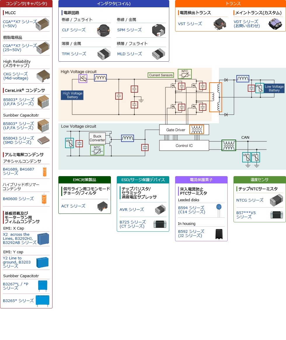 xEVの「DCーDCコンバータ」に関連する最適な製品をTDKグループの製品群からご紹介致します。