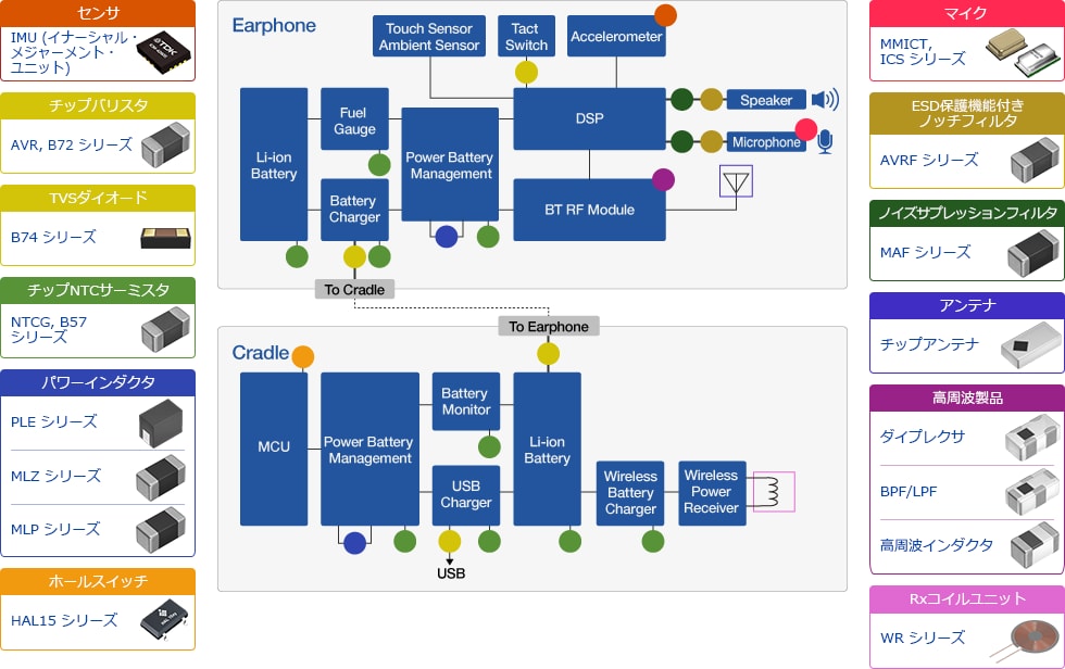 TDKグループの豊富な製品群からTWS (完全ワイヤレスステレオ)に最適な製品をご紹介致します。