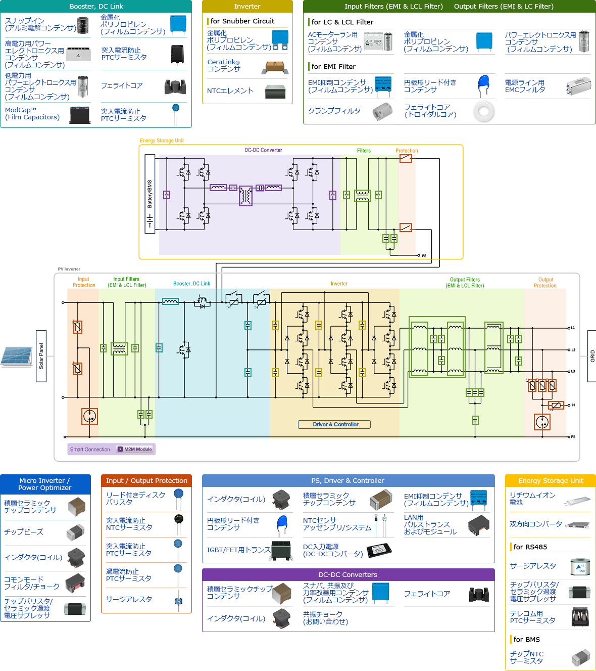 TDKグループの豊富な製品群から太陽光発電/蓄電システムアプリケーションに最適な製品をご紹介致します。