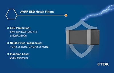 ESD保護機能付きノッチフィルタ TDKのESD保護機能付きノッチフィルタは、ESD保護とノイズ対策を両立した製品です。ESD保護部品の材料として一般的に用いられるバリスタ材を主に採用し、ESDから電子回路を保護することが可能です。さらに独自の材料設計と構造設計から特定の周波数に対して極めて優れた減衰特性を実現したことにより、高いノイズ抑制効果を発揮します。オーディオライン(イヤホン、マイク、スピーカ)においては、音声歪み(THD+N/全高調波歪み+ノイズ)が少なく、バーストノイズ(TDMA/TDD)対策や受信感度対策に高い効果が発揮される為、高音質が求められるオーディオ機器に最適です。 もっと見る 製品検索 カタログ 製品ごとの寸法や、電気的特性など詳細情報が記載されたデータシートをダウンロードしてご覧いただけます。 品番リスト すべての製品品番が一覧表示され、お探しの品番を選択できます。 Product Spotlights 注目コンテンツ ESD保護機能付きノッチフィルタのセレクションガイドが公開されました。 2020年7月6日 詳しく読む テックノート 技術記事 アプリケーション & 使用例 アプリケーションノート Bluetooth Audio 機器のノイズ対策とオーディオ品質の向上 近年、ケーブルを使った接続を必要としないワイヤレスオーディオが広く普及してきました。ハイレゾ化による音源データの増加や定額制音楽配信サービスなど、従来のCDなどのメディアを使用しないネットワークオーディオの利用も広がっています。新しいオーディオ利用はスマートフォンを中心としたサービスが多く、音の出力としてBluetooth接続を利用したスピーカーやイヤホンが多数を占めるようになりました。TWS(True Wireless Stereo)イヤホンが登場して、ケーブルなしの快適な装着感と外部からのノイズをキャンセルする機能を搭載することで、大音量での再生を減らす結果にもなり、周囲への音漏れについても気にすることなく使用することができるようになりました。また、Bluetooth接続のスピーカーでは信号伝送にケーブルが不要なため、再生機器とスピーカーの配置を自由にすることができるため、バッテリー駆動が可能なアンプ内蔵のモバイルスピーカーでは持ち歩きが可能となっています。 このように手軽で多くのメリットを持っているBluetooth Audio機器ですが、無線信号を必ず必要とするためケーブル接続によるオーディオ機器では発生しない問題も発生します。 本記事では、Bluetooth Audioの設計で問題になる現象とその対策例について紹介します。 詳しく読む 製品 & テクノロジー プレゼンテーションビデオ 無線通信を搭載したオーディオ機器のノイズ・静電気保護対策 『ESD保護機能付きノッチフィルタ』 詳しく読む その他のコンテンツ Product Training Module - オーディオソリューション (myTDKコンテンツ) 詳しく読む セレクションガイド ESD保護機能付きノッチフィルタ 詳しく読む ソリューションガイド ソリューションガイド ノイズサプレッションフィルタとESD保護機能付きノッチフィルタによるバーストノイズ対策 詳しく読む ソリューションガイド ソリューションガイド ノイズサプレッションフィルタとESD保護機能付きノッチフィルタによる音声ひずみ対策 詳しく読む ソリューションガイド ソリューションガイド ノイズサプレッションフィルタとESD保護機能付きノッチフィルタによるマイクロフォンラインのTDMAノイズ対策、受信感度の改善、ESD(静電気放電)対策 スマートフォンなどのマイクロフォンラインに、セルラーやWiFiの通信電波が干渉して侵入すると、その一部はTDMAノイズと呼ばれる可聴帯域のノイズ成分となり、スピーカーから不快な雑音として聞こえる場合があります。TDKのノイズサプレッションフィルタとESD保護機能付きノッチフィルタの組み合わせによる対策は、信号に影響を与えることなく、TDMAノイズの抑制に絶大な効果を発揮するばかりでなく、セルラーやWiFi通信の受信感度の改善、ESD(静電気放電)対策など、さまざまなメリットをもたらします。 詳しく読む アプリケーション & 使用例 アプリケーションノート D級アンプ用推奨製品 (ノイズサプレッションフィルタ、LPF用インダクタ、ESD保護機能付きノッチフィルタ) スマートフォンやオーディオ機器などに使われるD級アンプは、小型・高効率が特長ですが、高速スイッチングにともなって発生するノイズへの対策が不可欠です。TDKは信号に影響を与えることなく、高音質を確保したまま、効果的なノイズ対策を実現する各種製品をラインアップしています。本記事では、D級アンプを用いた各種機器のスピーカラインにおける使用例と効果についてご紹介します。 詳しく読む すべて表示 技術関連リンク 技術支援ツール News最新情報 RSS Feed 製品ニュース ゲーム/周辺機器のアプリケーションガイドが公開されました。 2023年8月25日 製品ニュース インフラ向け電源のアプリケーションガイドが更新されました。 2023年8月10日 技術支援 リモートEMC試験サービスご提