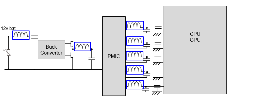 BCLシリーズは、コイルが金属材料で完全にモールドされた一体構造により、TDKの他のシリーズと比較して、漏洩磁束が少なく、電源回路での高効率を実現しています。