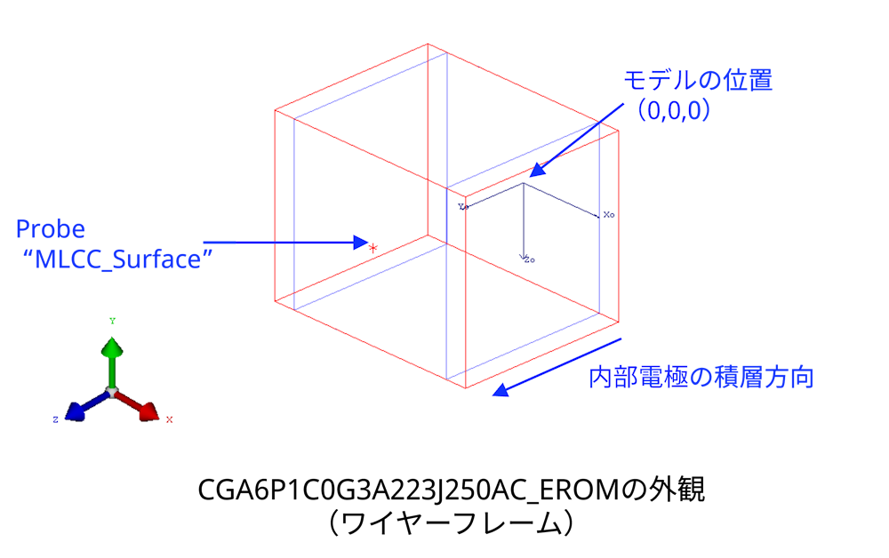 MLCCの底面中心部が(0,0,0)となっており、この点とProbeの“MLCC_Surface”を結ぶ方向にMLCCの内部電極が積層されている方向と一致します。