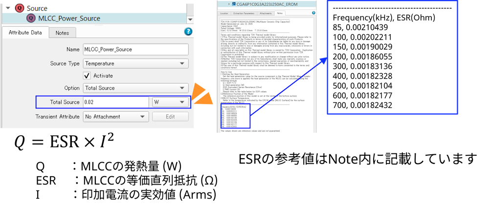 | Sources | MLCC内部で発生する発熱量を定義します。 |